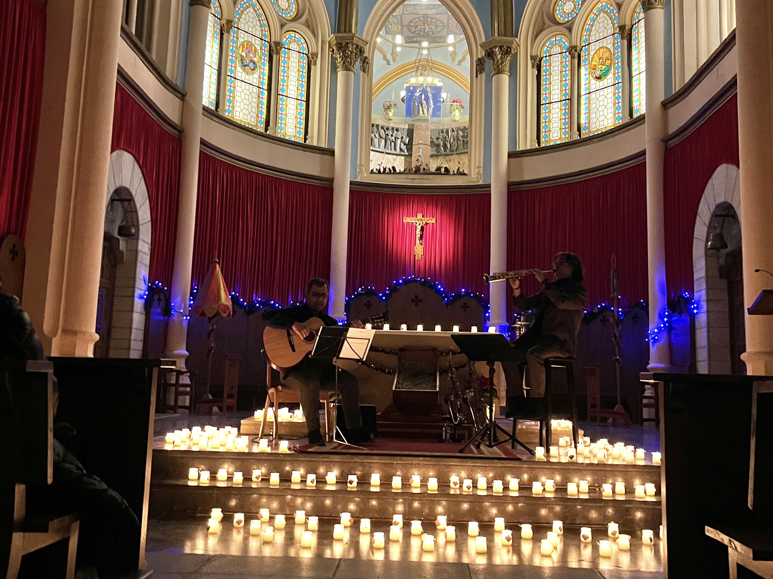 Amb els seus SAXOS i la GUITARRA i a l'altar rodejats d'espelmes es va generar l'atmòsfera especial i única dels concerts "CANDLELIGHT".
