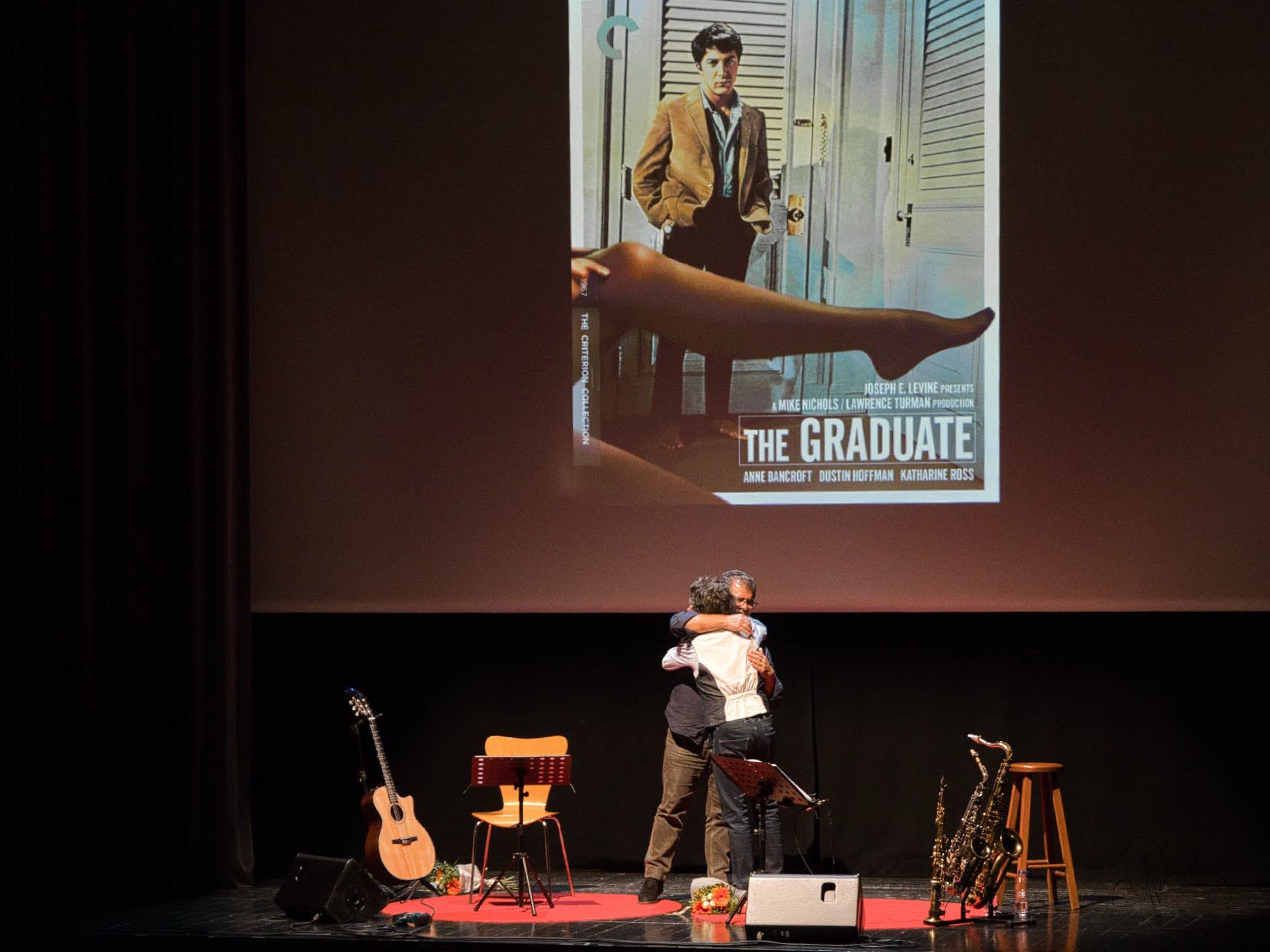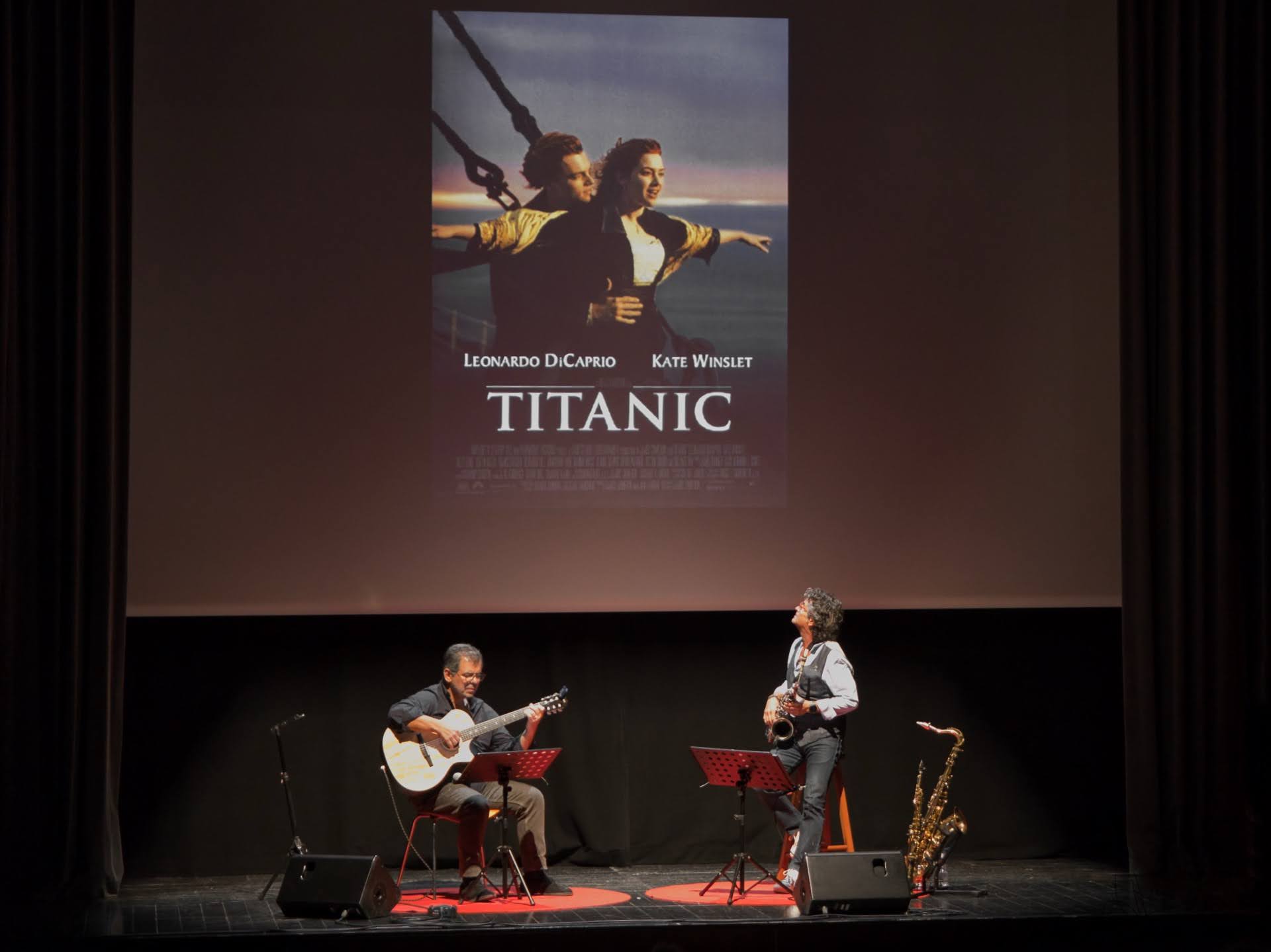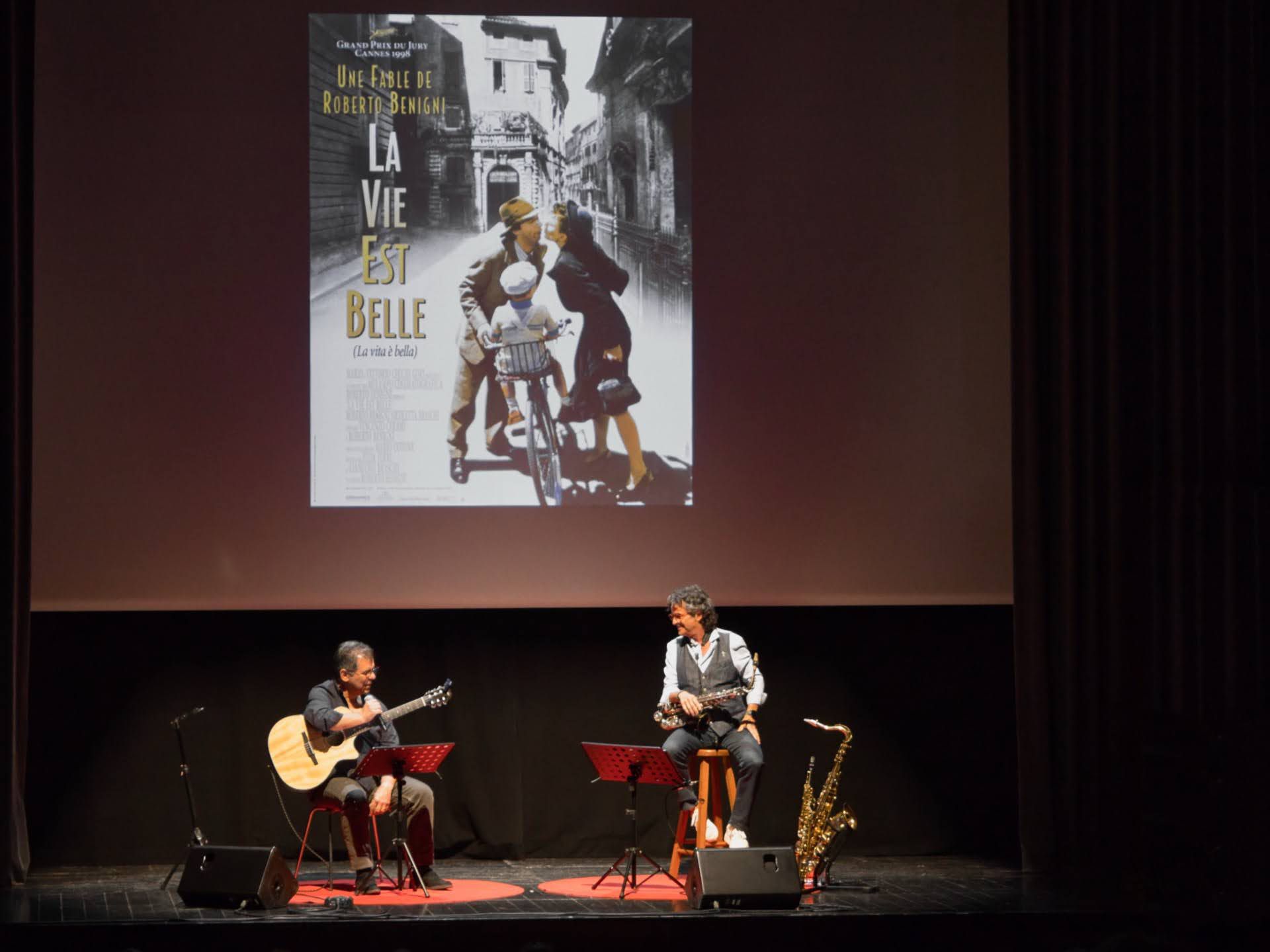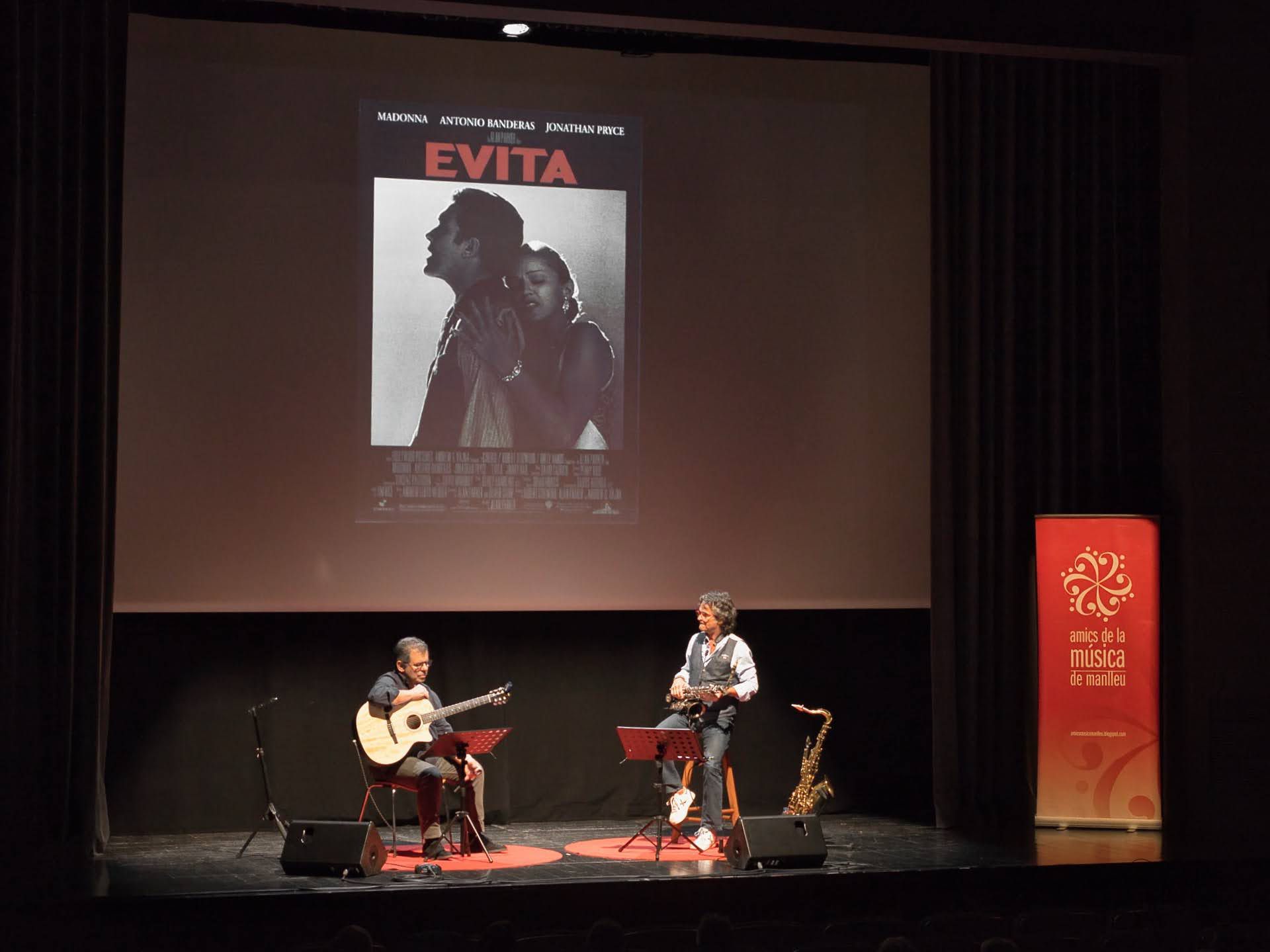 Amb un TEATRE MUNICIPAL de MANLLEU plè es va poder gaudir del primer "SAX, GUITAR & FILMS" amb el suport d'imatges de les pel·lícules.