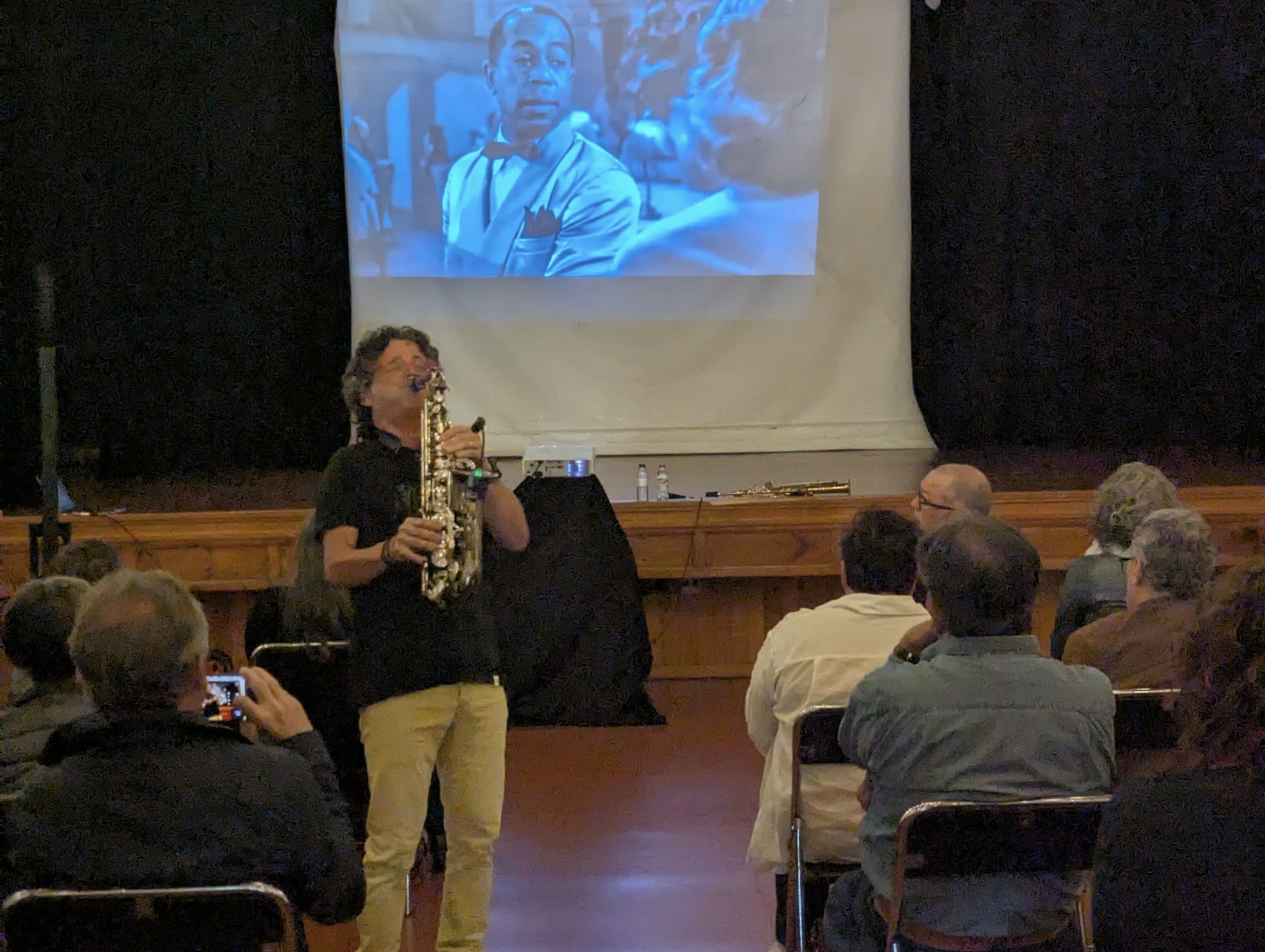 Amb una selecció molt acurada de BANDES SONORES (Cinema Paradiso, Shreck, Ghost, La Vida de Brian, 50 Sombras de Grey, Lalaland, etc), "UN SAXO DE PEL·LÍCULA" es un concert-espectacle que s'acompanya d'imatges de les pròpies pel·lícules, tot coordinant imatge-so i que crea un efecte d'integració a les pel·lícules a traves de la pantalla i el so dels diferents SAXOS que interpreta PEP POBLET.